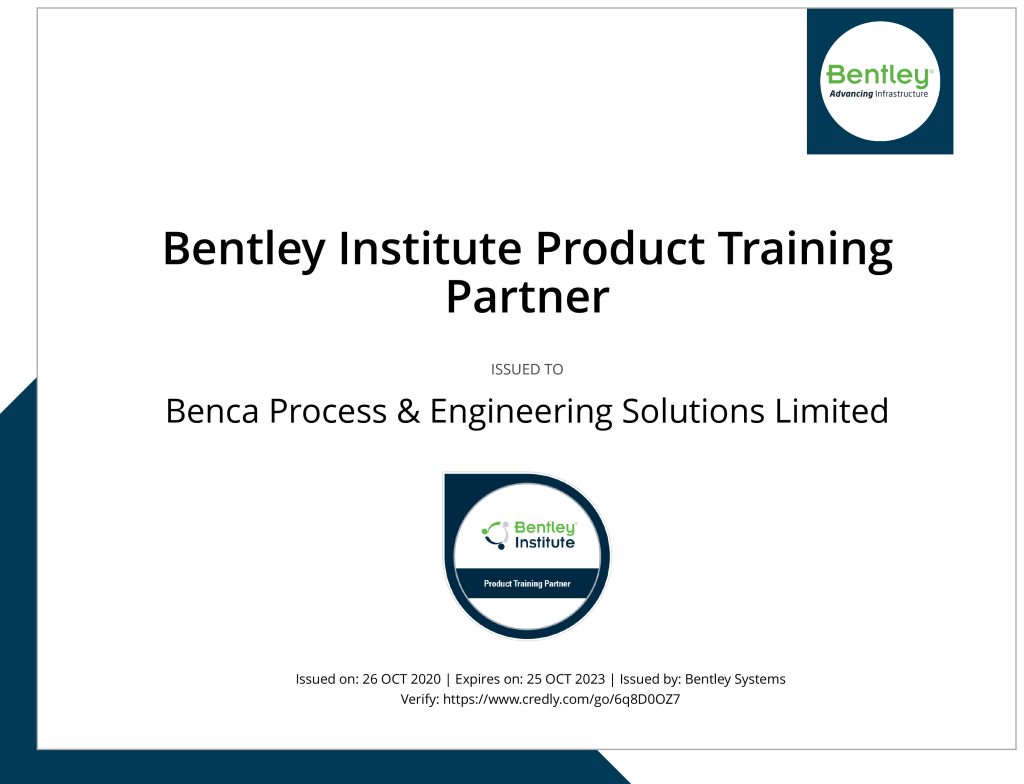 Cuando invierte en software de Bentley, está dando un gran paso para garantizar el éxito del proyecto. Para beneficiarse plenamente de su inversión, sus diseñadores e ingenieros la deben adoptar y dominar, utilizando plenamente las últimas funcionalidades, para ofrecer los mejores resultados para sus proyectos y clientes. En Benca Process & Engineering Solutions Limited estamos comprometidos y estamos autorizados por Bentley’s Institute para proporcionar programas de aprendizaje para cada cronograma y presupuesto, lo que permite una mejora continua de las habilidades que, en última instancia, aumenta la productividad, la calidad del proyecto y la rentabilidad.